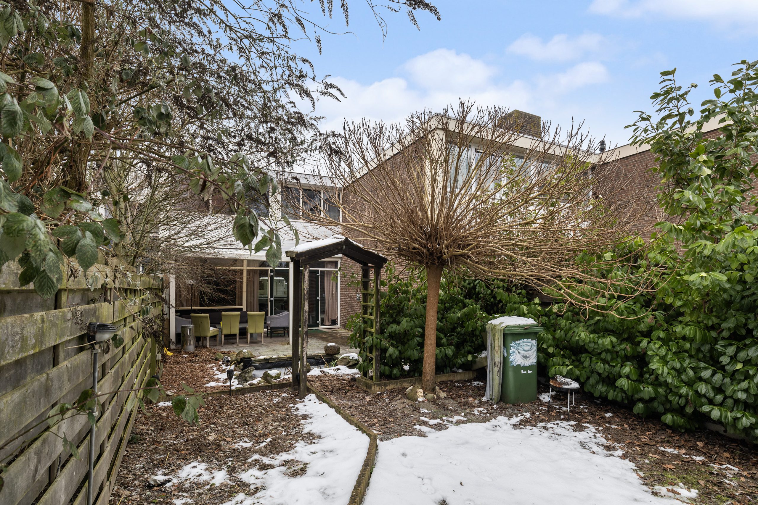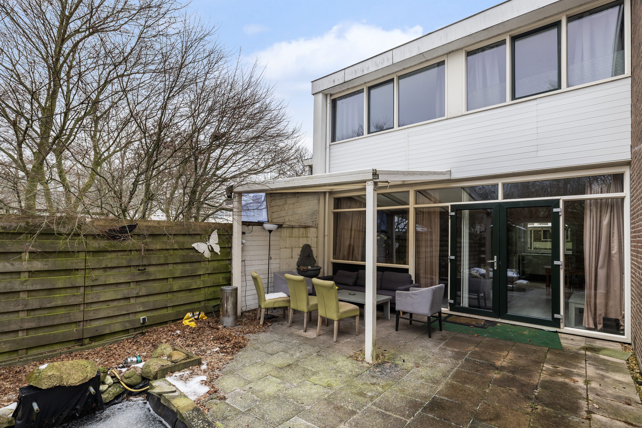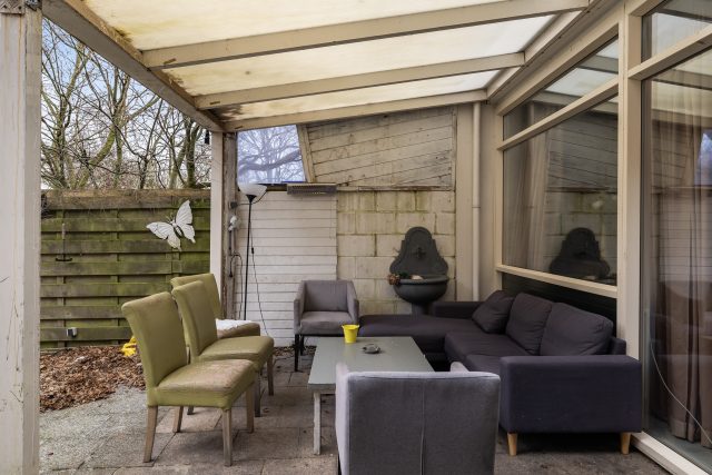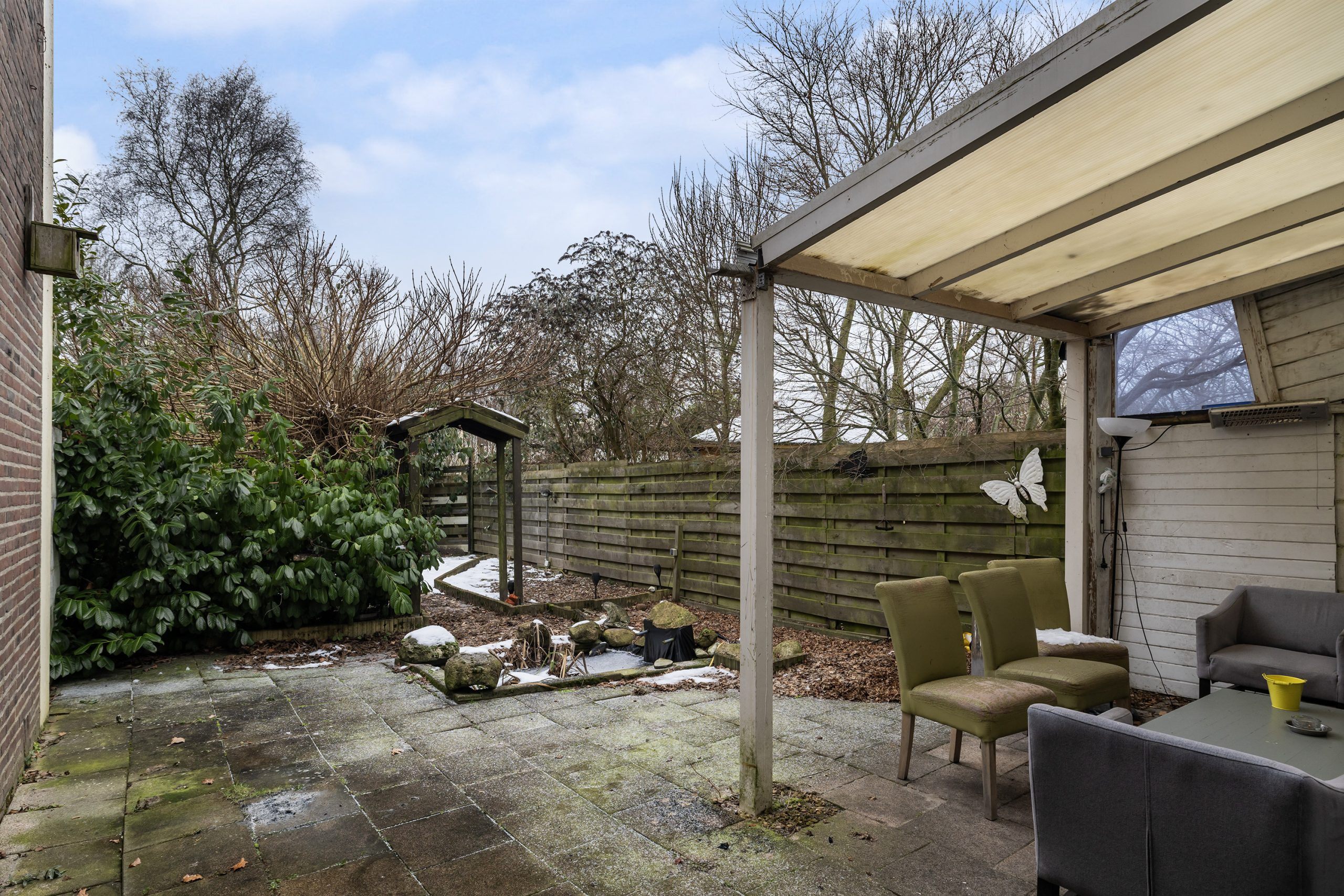 -Achtertuin met veel privacy en overkapping