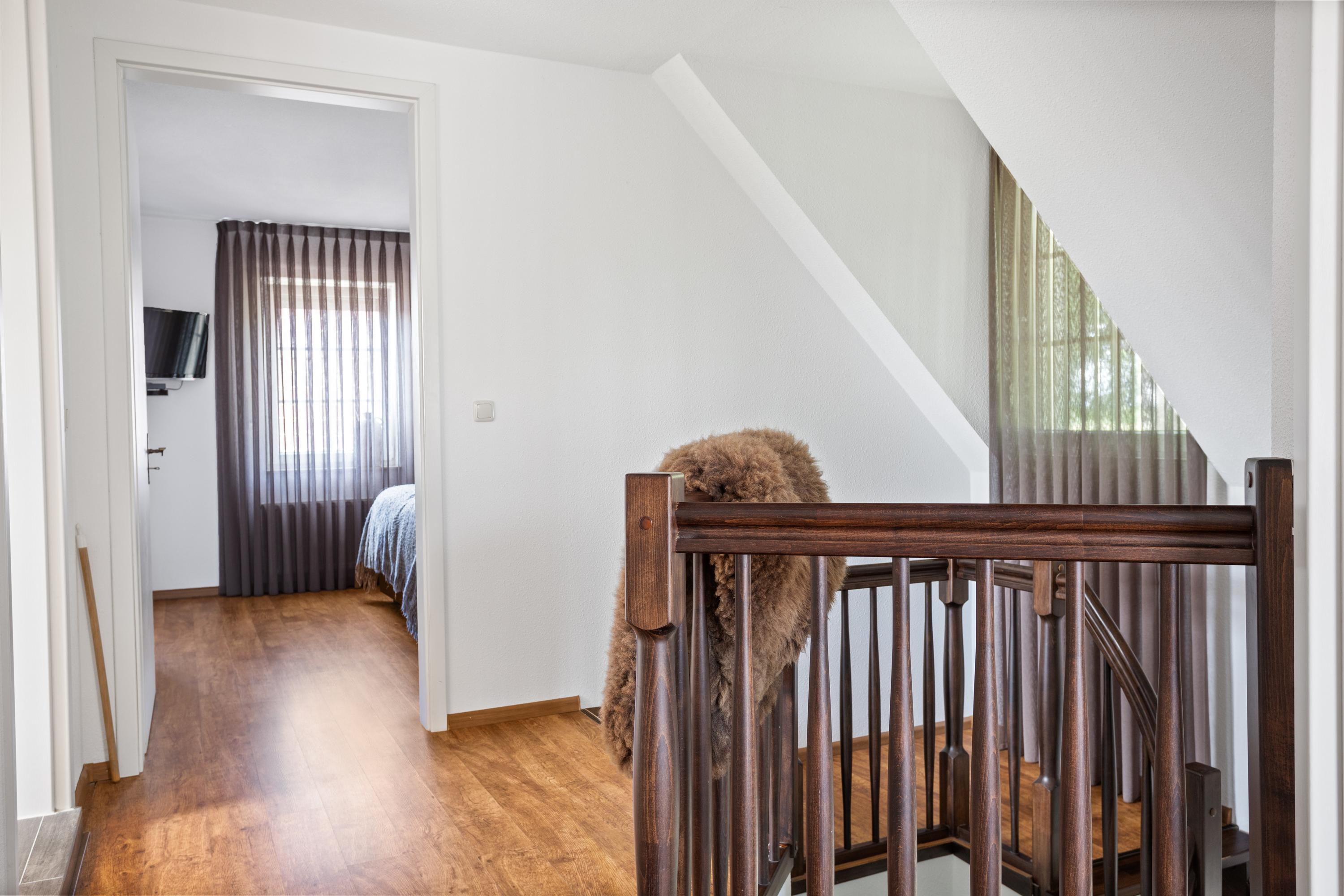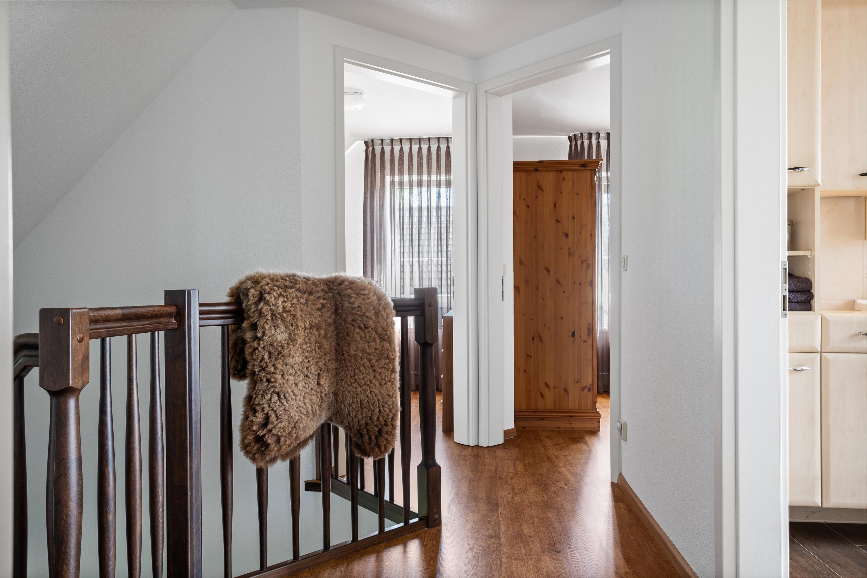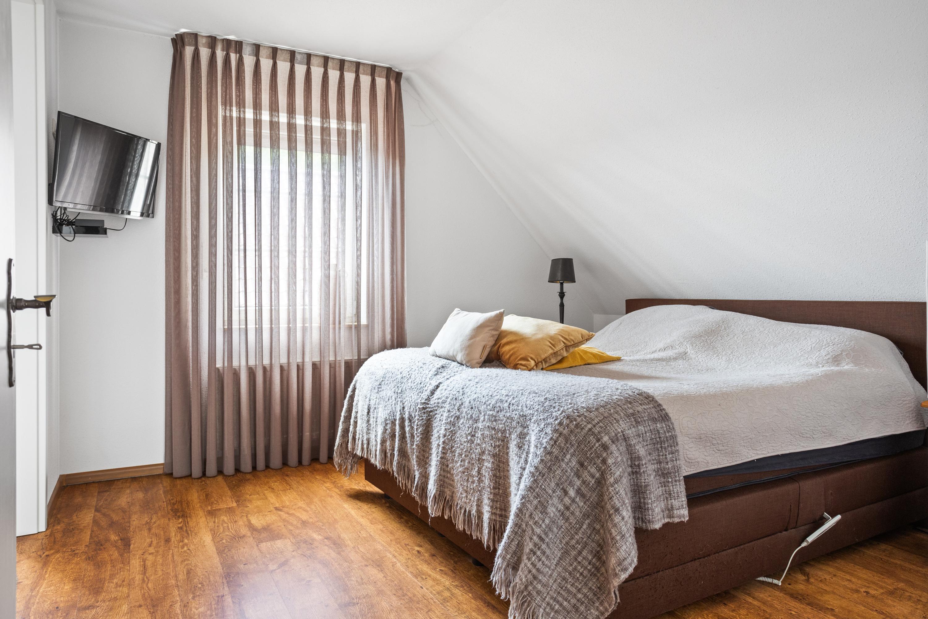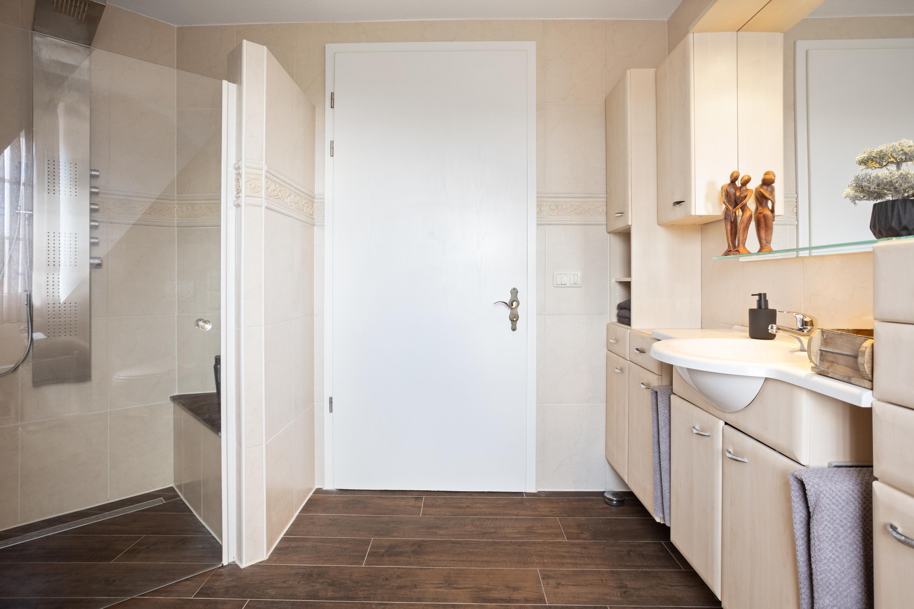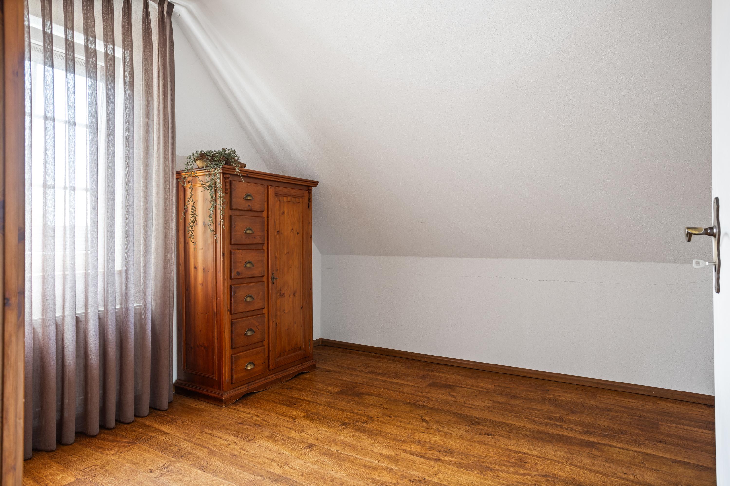 Op de verdieping vind je een royale hoofdslaapkamer met een riante inloop-kledingkamer ensuite, twee slaapkamers en de luxe badkamer. Deze is voorzien van vloerverwarming, toilet, wastafelmeubel, whirlpool en een royale inloopdouche met zitbanken en meerdere sproeistanden. Via een vlizotrap is de praktische bergzolder bereikbaar.